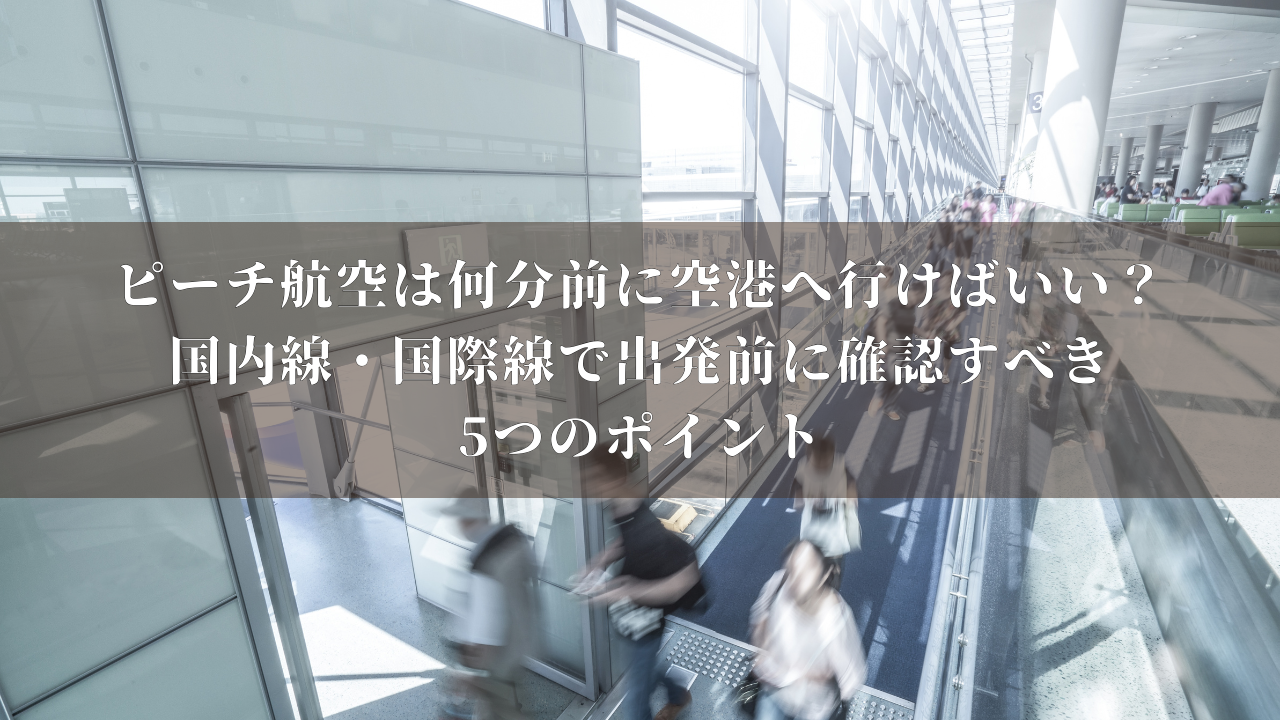 この記事では、ピーチ航空の国内線・国際線それぞれの理想的な空港到着時間やチェックインの流れ、主要空港での注意点をまとめています。